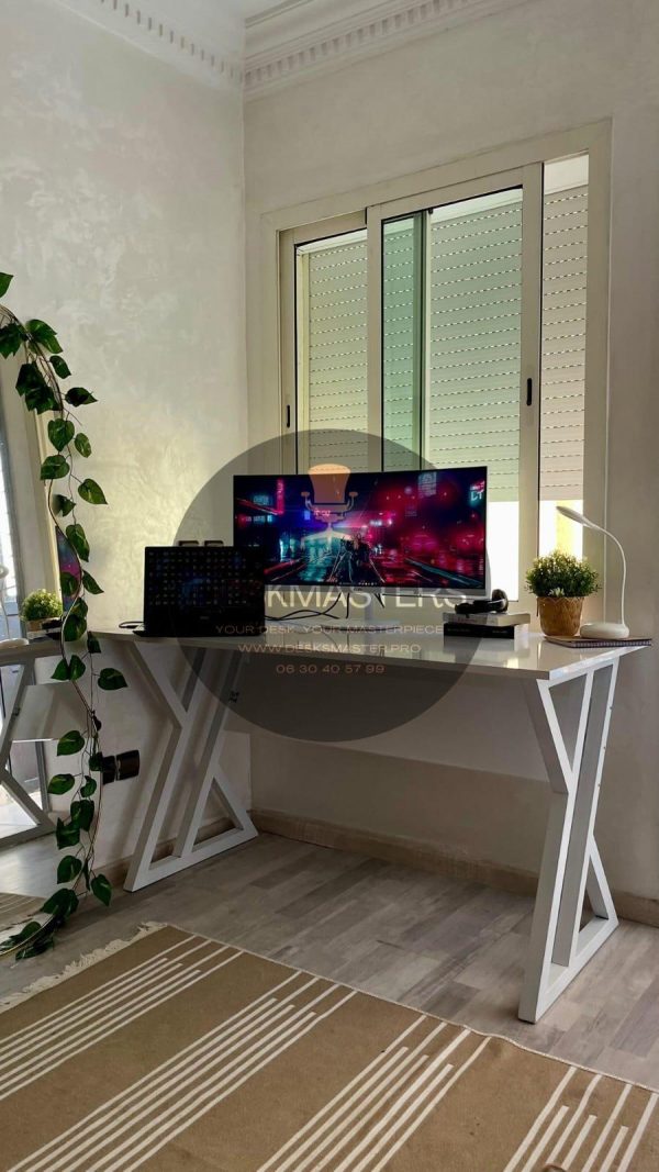Chez Deskmasters, nous concevons des bureaux au design moderne et élégant, parfaits pour sublimer votre espace de travail ou de gaming. Ce bureau incarne le minimalisme avec son plateau en MDF de haute qualité, offrant à la fois solidité et durabilité. Ses pieds métalliques en blanc, aux formes géométriques distinctives, apportent une touche de style tout en garantissant une stabilité irréprochable. Parfait pour les intérieurs contemporains, ce bureau allie esthétisme et fonctionnalité, et s’adapte parfaitement aux environnements de travail exigeants grâce à sa conception durable et soignée.