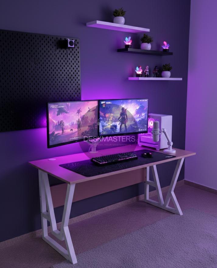 Harmonie de Couleurs: L’alliance du Blush Délicat du plateau et du Blanc Impeccable des pieds insuffle une ambiance calme et concentrée, parfaite pour de longues sessions de travail ou de jeu.
