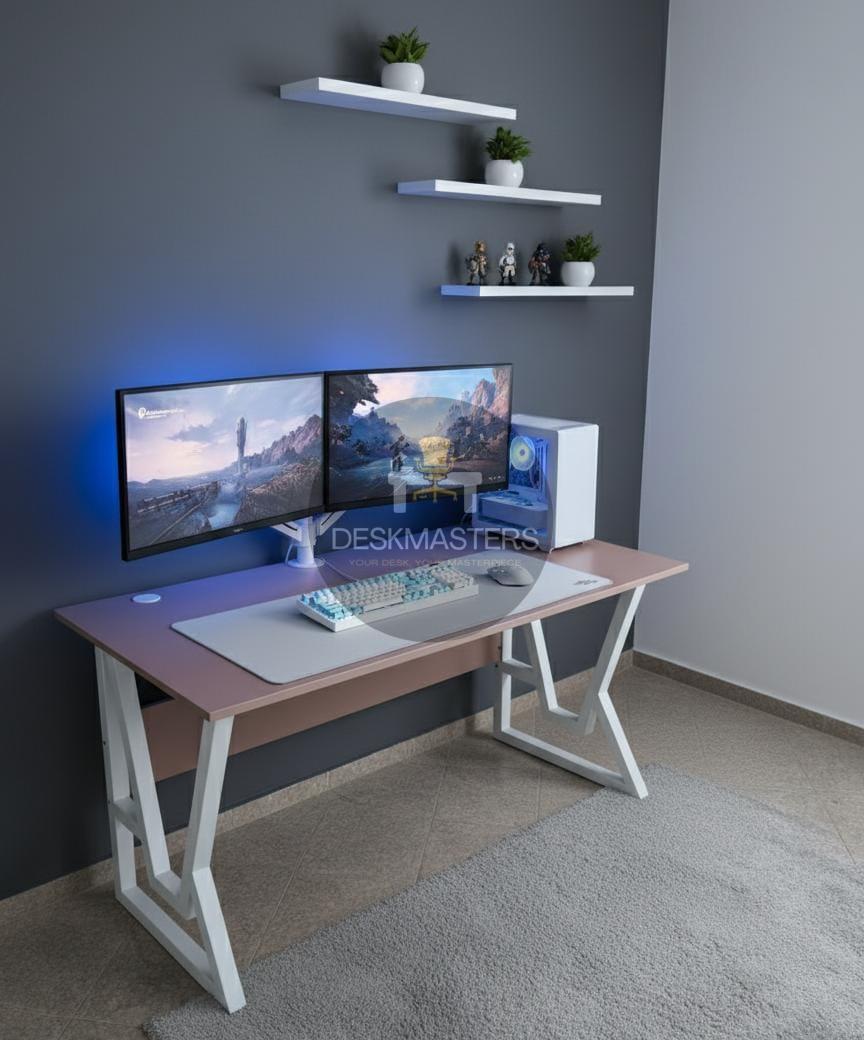 Plateau Doux et Généreux: Le plateau en MDF de finition blush pink n’est pas seulement magnifique ; sa surface lisse et mate est optimisée pour le glissement de la souris et minimise les reflets. Installez facilement vos doubles écrans et votre équipement sans compromettre votre confort.